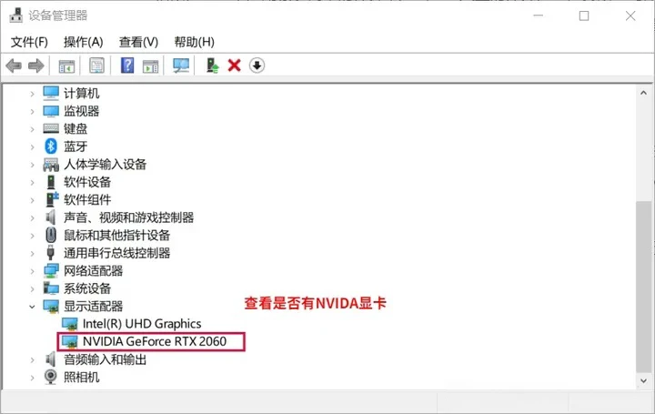 想要使用GPU加速,则需要安装cuda,所以首先需要自己的电脑显卡是否支持cuda的安装,也就是查看自己的电脑里面有没有NVIDA的独立显卡,这里再说明一下,AMD的显卡不支持安装cuda来进行加速,具体查看步骤如下: